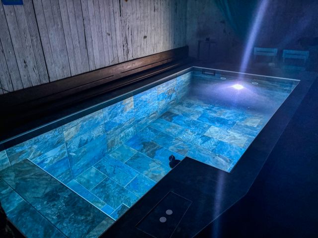 - Au rez-de-chaussée : une belle entrée dévoile une cuisine aménagée équipée de belle facture ouverte sur la salle à manger, un salon, une pièce avec cheminée donnant sur une cour intérieure dotée d'une piscine carrelée (nage à contre-courant, balnéo, pompe à chaleur) double garage (portes motorisées) au-dessus un grand grenier aménageable en appartement pouvant être indépendant, chaufferie/buanderie, cave. Palier supérieur : salle d'eau avec wc