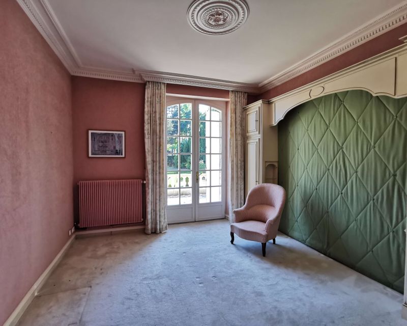 Extérieurs : Cour gravillonnée et allées gravillonnées, jardin avant avec pelouse et verger, jardin arrière d'agrément arboré, cabanon en bois. Terrasse dallée avec store banne à commande électrique. Fontaine d'ornement.