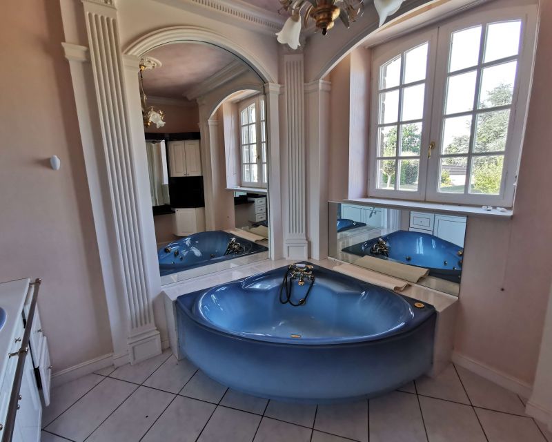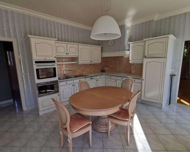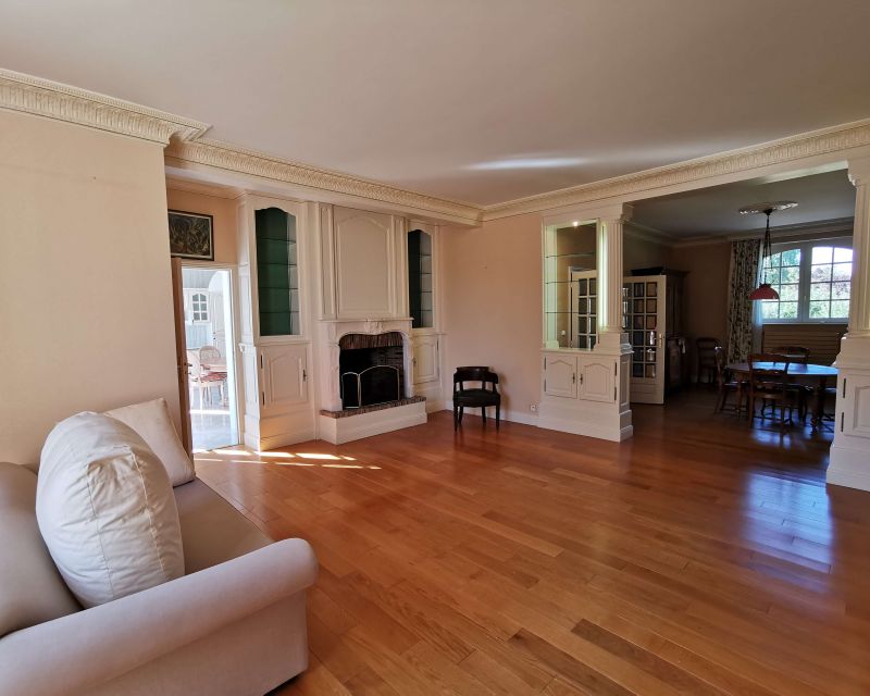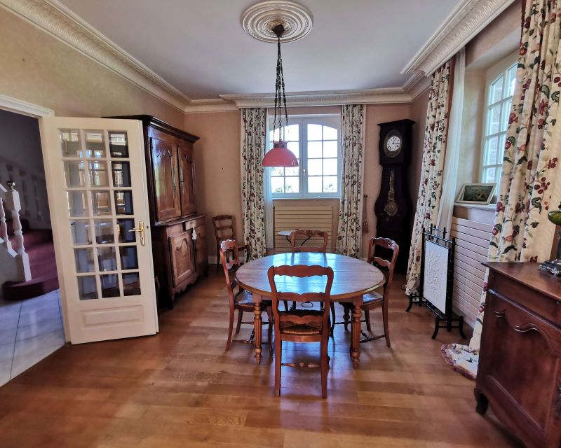 - Au rez-de-chaussée : Hall d'entrée, salle de séjour - salle à manger - salon avec cheminée, cuisine aménagée et équipée avec espace repas, dégagement, wc avec lave-mains, couloir avec placard, lingerie-buanderie, suite avec chambre, dressing dans un espace ouvert, salle de bains et wc séparés.