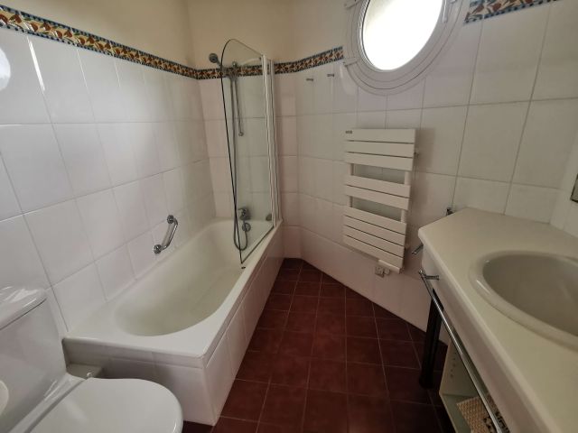- A l'étage : salle de séjour - salon avec cheminée avec insert, espace ouvert salle à manger - cuisine aménagée et équipée, chambre avec salle de bains-wc donnant accès à deux balcon-terrasses, wc avec lave-mains.