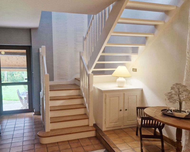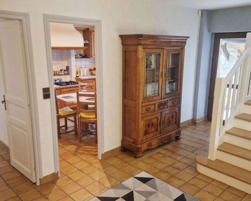 Au rez-de-chaussée, vous trouverez une belle entrée, un salon chaleureux avec sa cheminée et ses murs de pierres apparentes, une salle à manger lumineuse donnant sur la terrasse et le jardin, une cuisine indépendante entièrement aménagée et équipée, ainsi qu'une suite parentale avec salle de bains.
