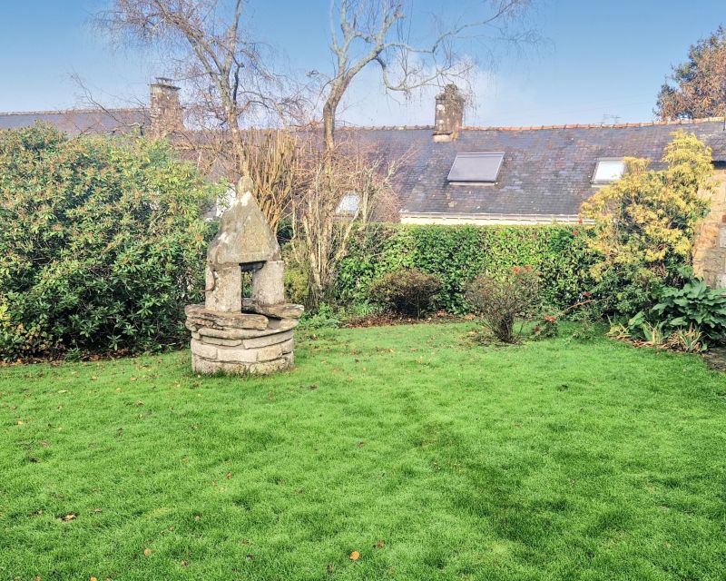 Le jardin paysager de 944 m² avec son puits décoratif ajoute une touche de charme à cette propriété.