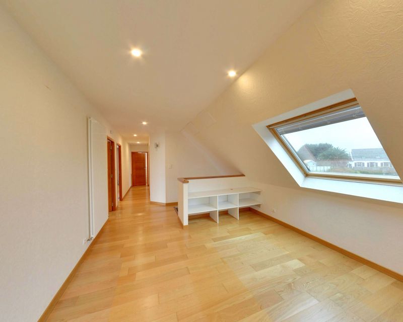 À l'étage, deux grandes chambres offrant une belle vue sur la mer vous offrent un cadre de vie exceptionnel. Une spacieuse mezzanine, pouvant être aménagée en une quatrième chambre, ainsi qu'une salle de bains et une salle d'eau, complètent harmonieusement cet étage, tandis qu'un débarras avec placard vous permettra d'optimiser votre espace de rangement.