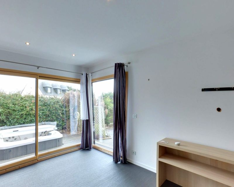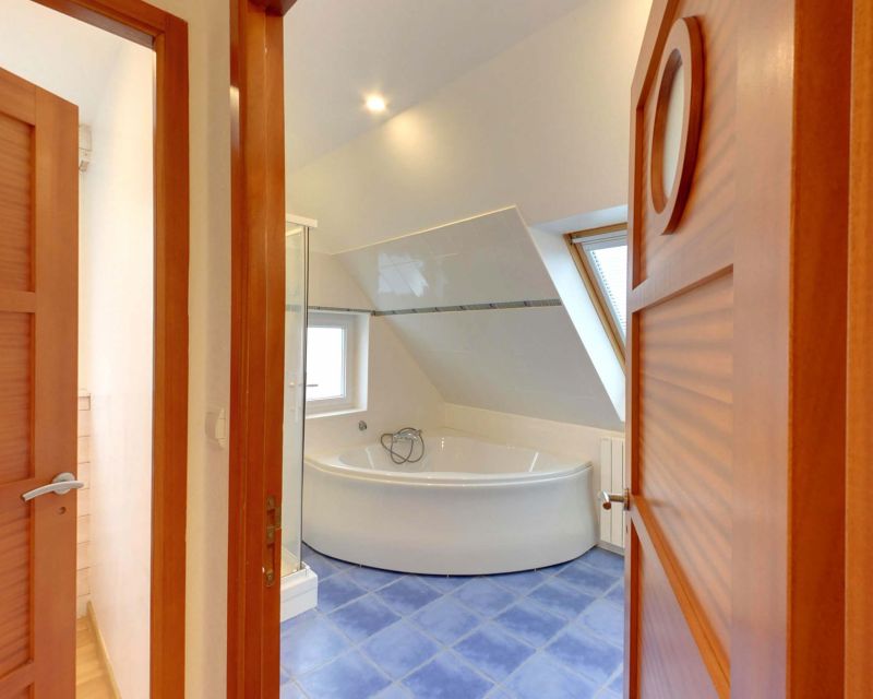 Cette ravissante demeure bretonne propose des prestations haut de gamme. Sa piscine couverte et son jacuzzi vous invitent à la détente et à la relaxation, tandis que deux grandes terrasses offrent une ambiance maritime incomparable. Depuis l'une d'entre elles, une petite vue mer vient sublimer l'atmosphère.