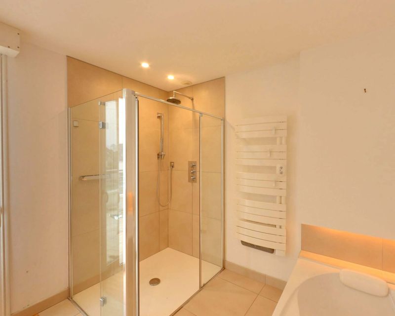 Cette maison allie confort et économie d'énergie grâce à son chauffage thermodynamique et ses deux pompes à chaleur dédiées à la maison et à la piscine. Le chauffage par le sol et les radiateurs offrent une chaleur douce et homogène à tous les niveaux de la maison.