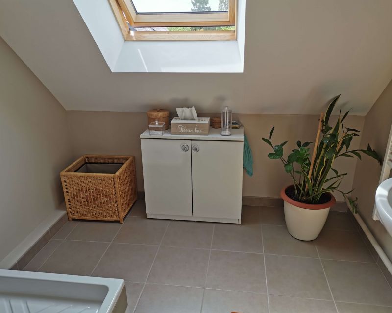 - A l'étage : palier, deux chambres, débarras, salle d'eau.