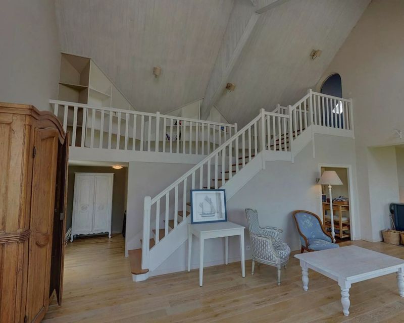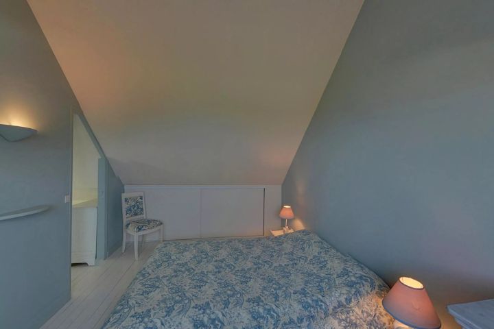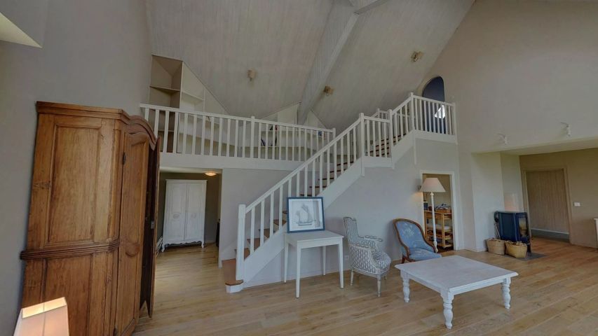 - A l'étage : trois chambres vue mer dont deux avec salle d'eau et w.c., grand dégagement, (nombreux couchages possibles à cet étage). Rangements.