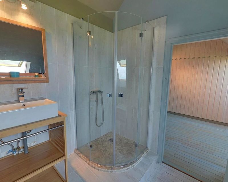 - Au rez-de-chaussée : entrée, salle de séjour - salon avec un poêle à bois et dotée d'une vue sur la mer, cuisine aménagée et équipée, trois chambres dont deux avec vue mer et accès à la terrasse, dégagement avec rangements et espace buanderie, salle d'eau, salle de bains. 2 w.c. Vestiaire. Nombreux accès vers l'extérieur.