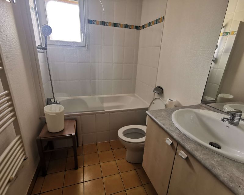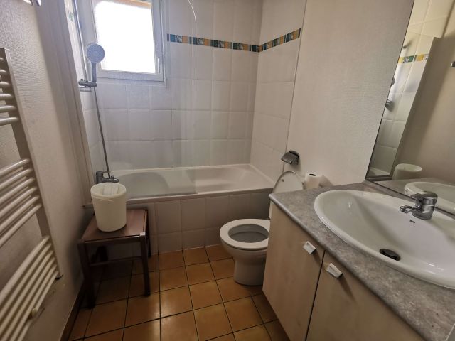 - Appartement de type 2, au rez-de-jardin, d'une surface de 42,28 m², comprenant : entrée, salle de séjour avec une kitchenette ouvrant sur une terrasse au Sud, dégagement avec placard, salle de bains, une chambre avec placard, w.c. Emplacement de parking extérieur privé.