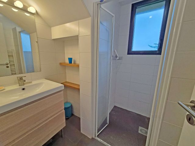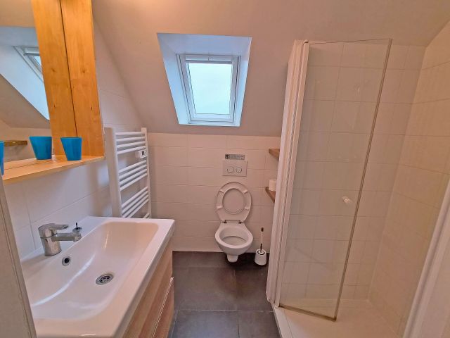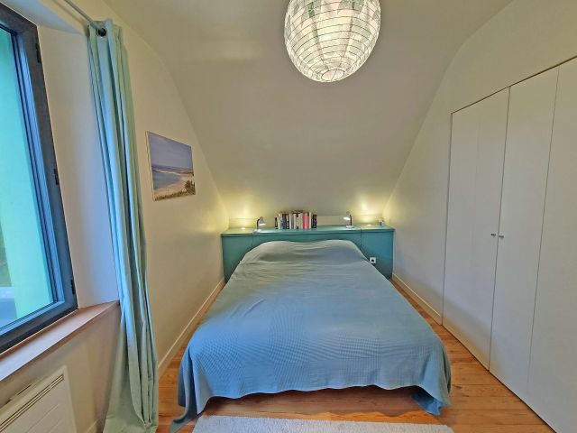 • L'espace nuit à l'étage : Le palier dessert deux belles chambres lumineuses avec placards intégrés, dont une véritable suite avec sa salle de douche privative et WC.