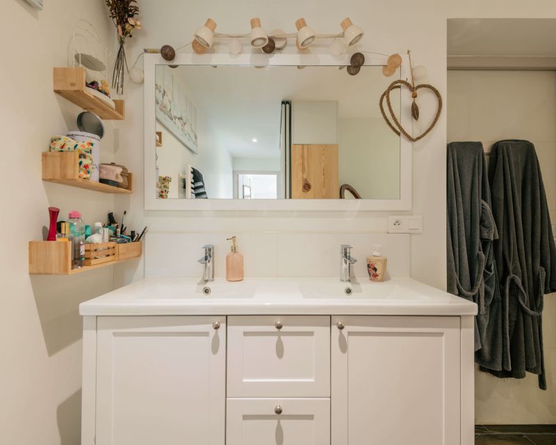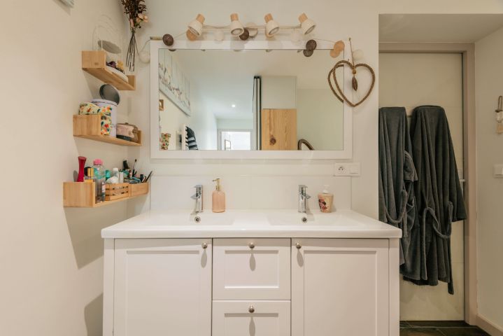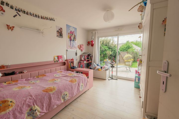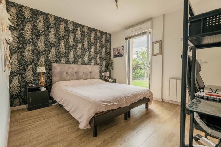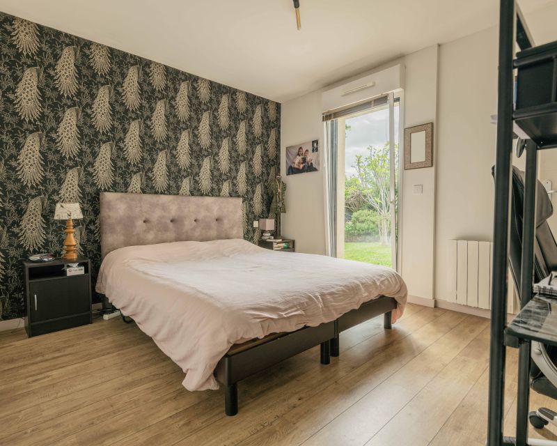 Le rez-de-chaussée accueille également deux chambres, dont une avec dressing et salle de bains privative. Une buanderie, des WC ainsi qu'un garage avec porte motorisée complètent ce niveau. On note également la présence d'une trappe à linge reliant les étages, apportant un confort supplémentaire au quotidien.