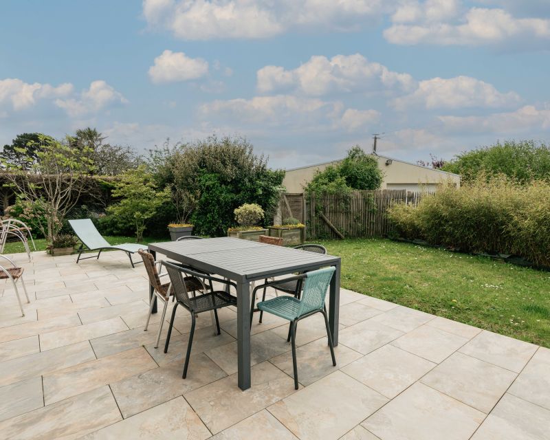 Le terrain accueille une grande terrasse exposée plein sud, prolongeant les espaces de vie. Les dépendances apportent un véritable potentiel complémentaire : un ancien garage réhabilité en gîte indépendant permet d’accueillir famille et amis en toute autonomie, avec séjour, cuisine, chambre et salle d’eau. Un second garage indépendant, situé en fond de jardin, offre des possibilités de stockage, d’atelier ou d’aménagement supplémentaire. Un espace attenant au gîte laisse également envisager une extension.