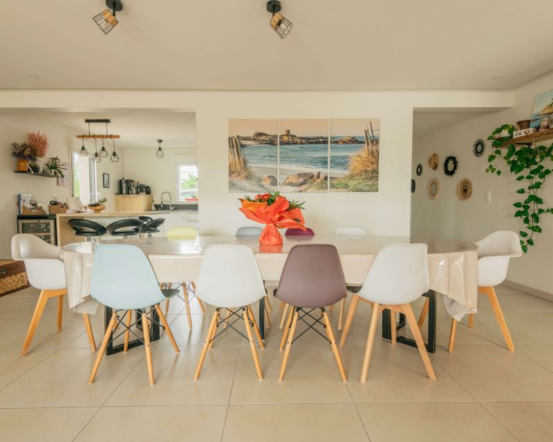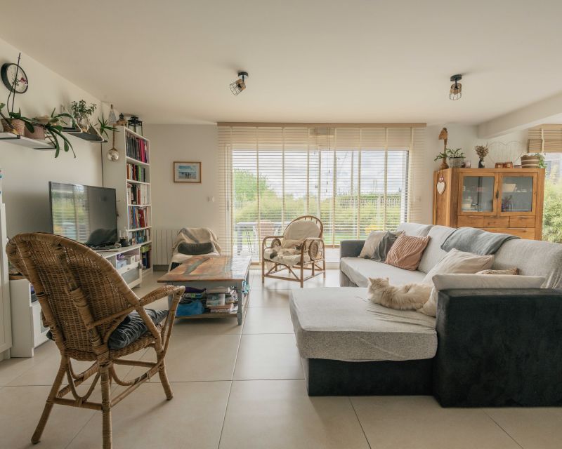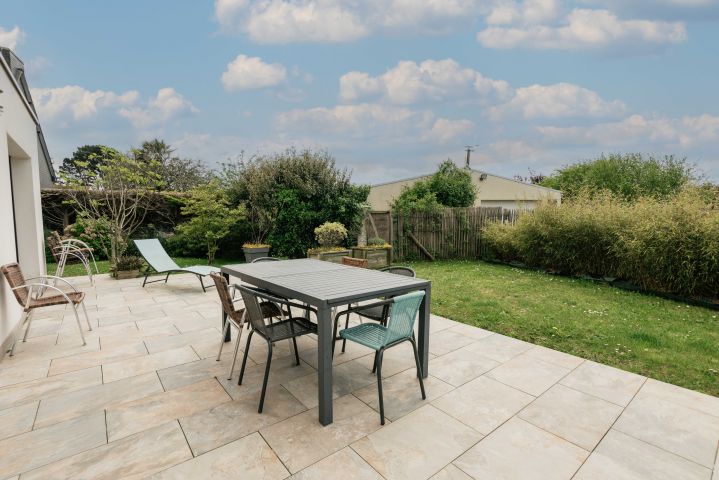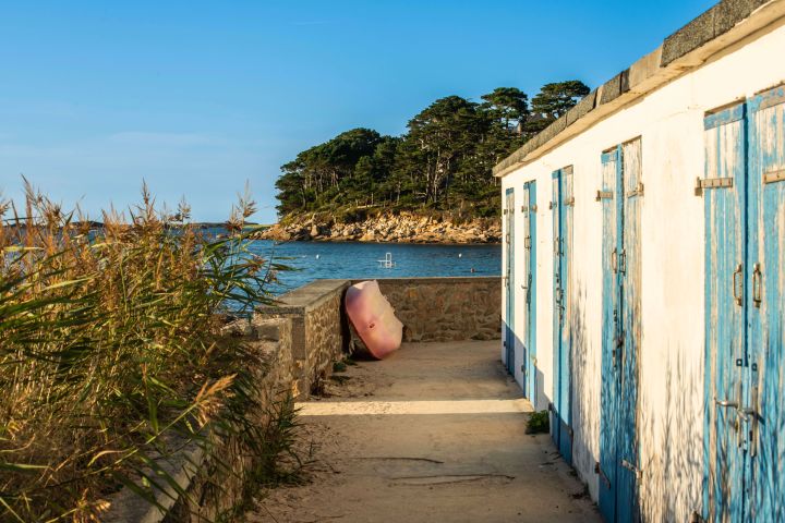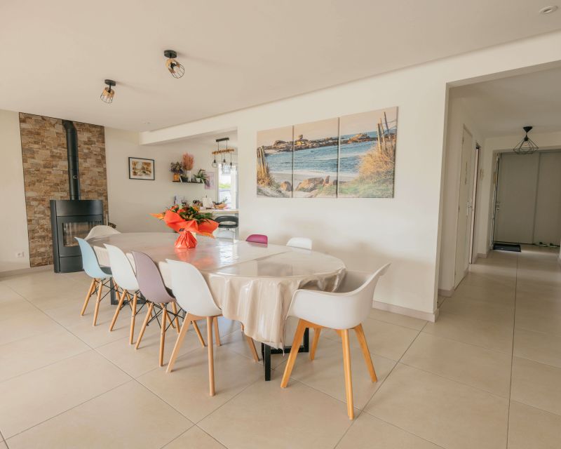 Implantée dans un quartier calme, la maison se trouve à seulement 1,5 km du bourg et des commerces, et à moins d'un kilomètre de la plage de Pors Mabo, accessible facilement à pied ou à vélo.