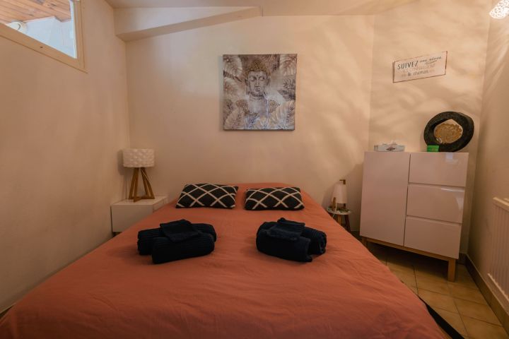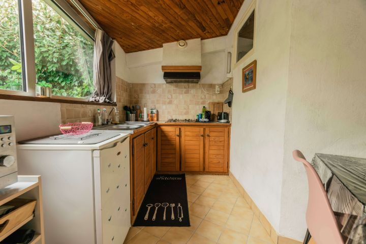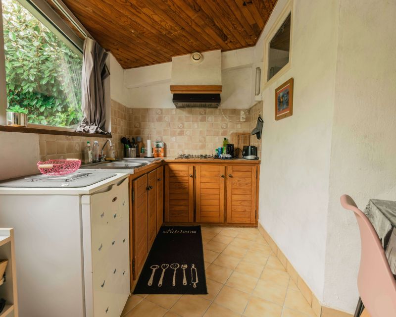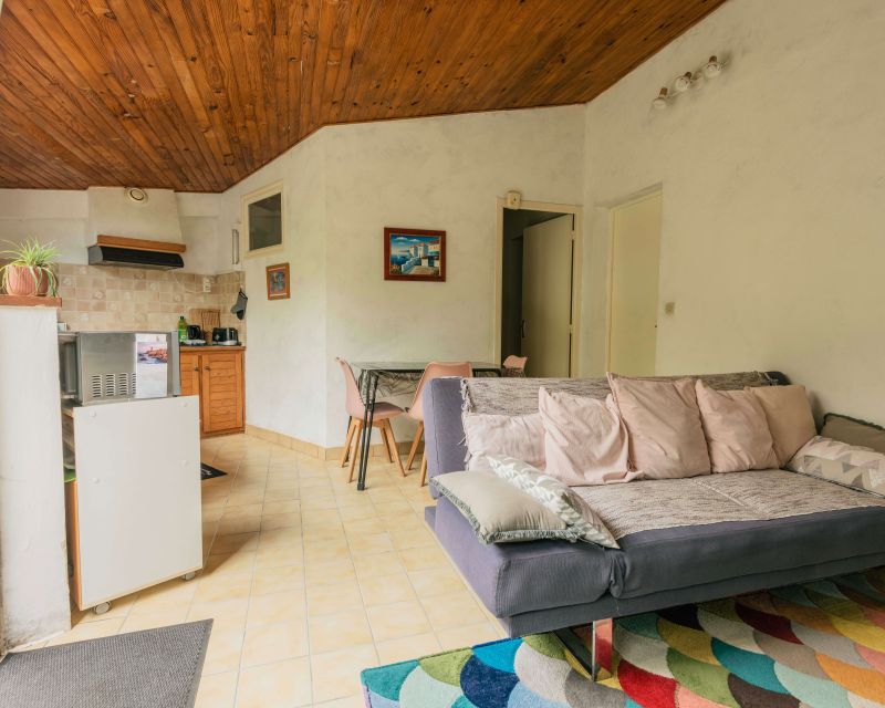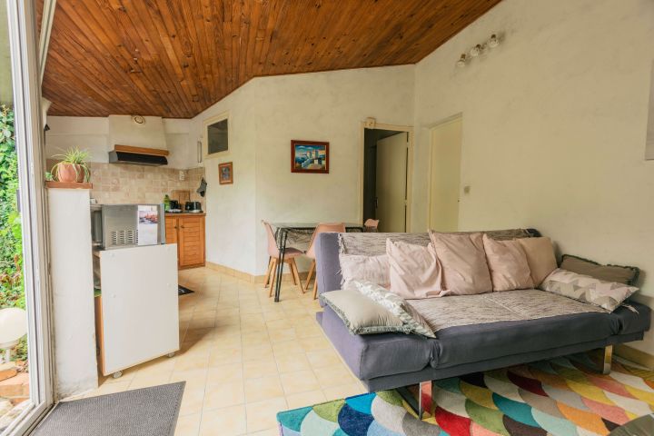 Le terrain offre plusieurs possibilités d'aménagement grâce à des dépendances existantes. Un ancien garage, réhabilité en gîte, permet d'accueillir famille et amis de manière indépendante avec un séjour, une cuisine équipée, une chambre et une salle d'eau avec WC. Un espace de stockage attenant laisse envisager une extension de cet ensemble.