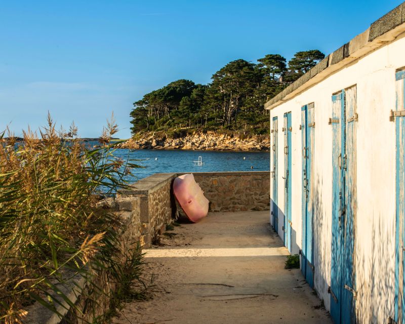 Située sur la commune de Trébeurden, dans un quartier calme et résidentiel, la maison bénéficie d’un emplacement recherché à proximité du littoral. La plage de Pors Mabo est accessible à pied ou à vélo en moins d’un kilomètre, tandis que le bourg et les commerces se trouvent à environ 1,5 km. L’environnement permet de profiter pleinement de la Côte de Granit Rose, entre mer et nature.