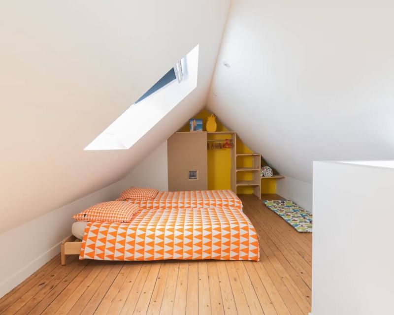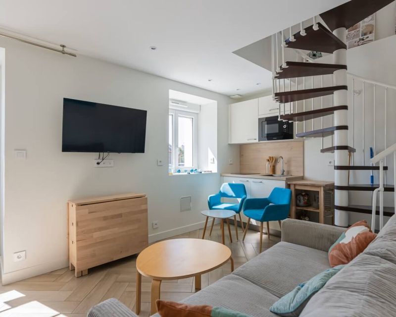 Au 2ème étage : les combles sont aménagées en chambre-mezzanine, offrant un espace supplémentaire plein de charme.