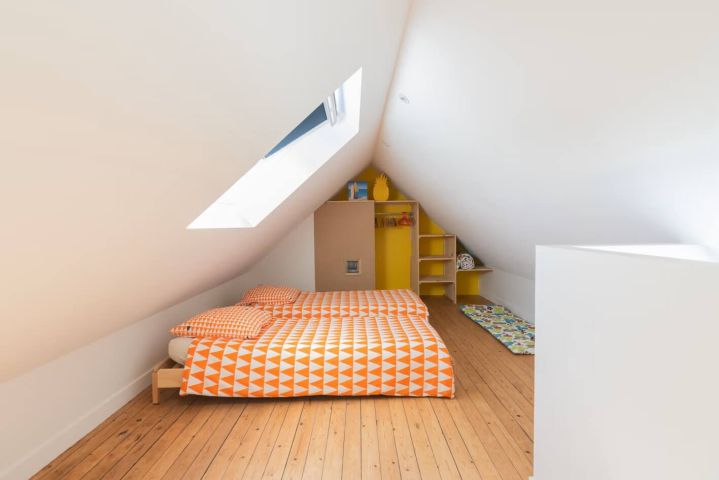 Au 2ème étage, les combles ont été aménagées en mezzanine dont la destination peut être aussi bien une chambre, qu'un bureau, une salle de jeux ou une salle de cinéma.