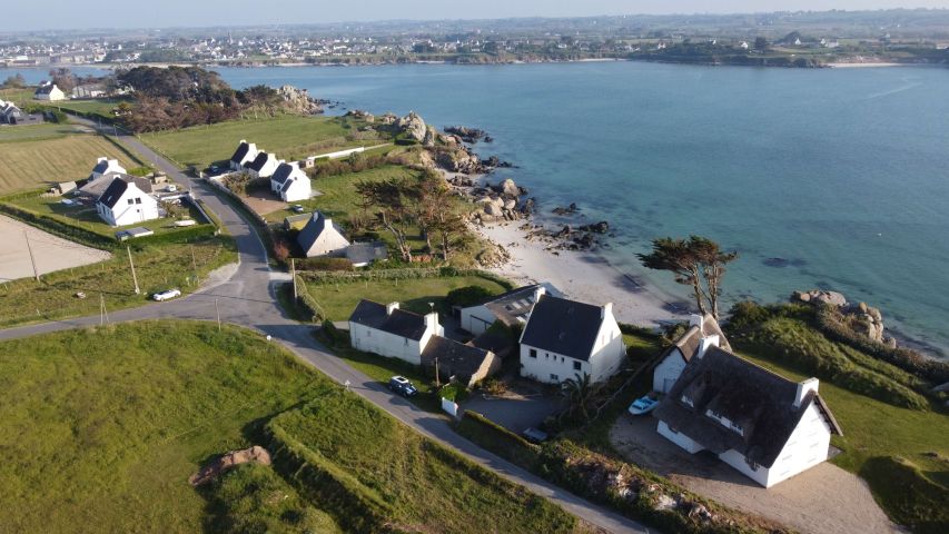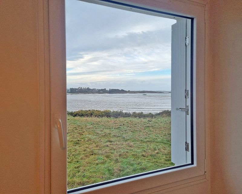 La maison bénéficie d’une vue exceptionnelle sur la baie de Guissény ainsi que d’un panorama remarquable sur le phare de l’Île Vierge, situé à Plouguerneau.