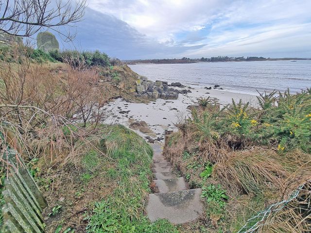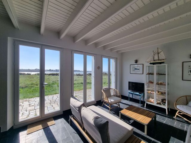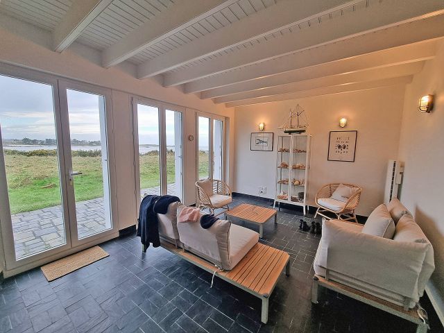 Le terrain de plus de 3 000 m², en partie laissé en lande sauvage, prolonge naturellement la propriété vers l’estran et dessine un cadre rare, intime et préservé.