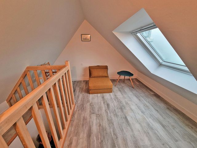 Une quatrième petite chambre ou salle de jeux, accessible par un second escalier, permet d’imaginer un espace enfants ou télétravail.