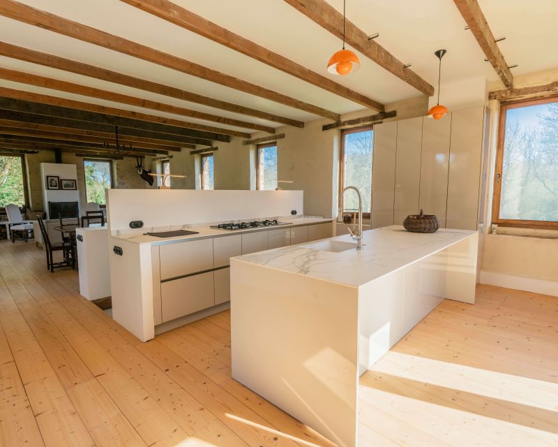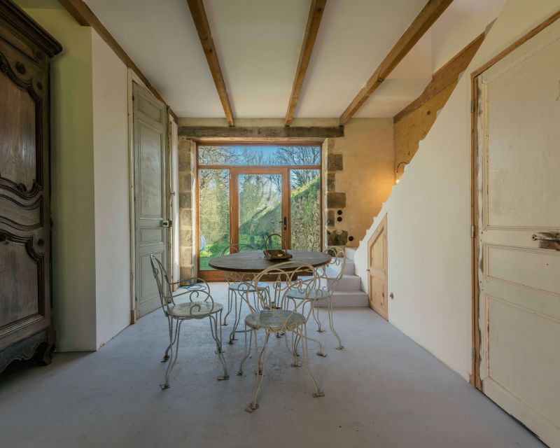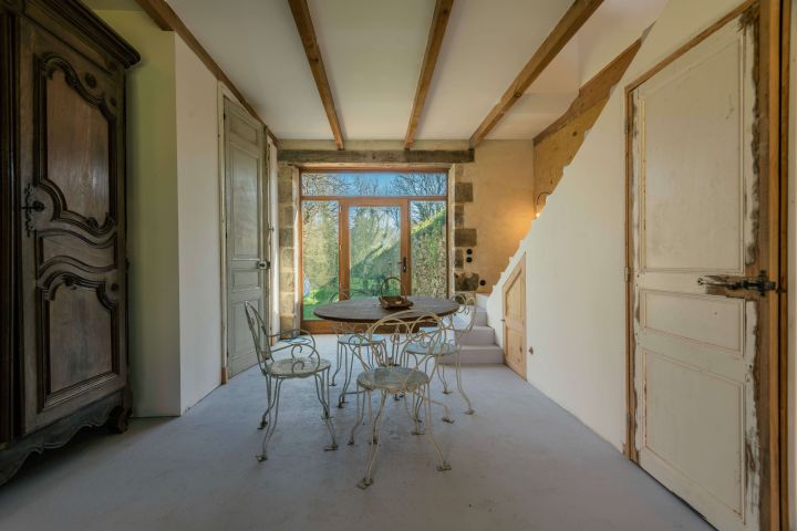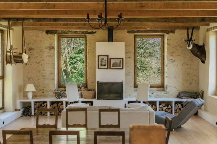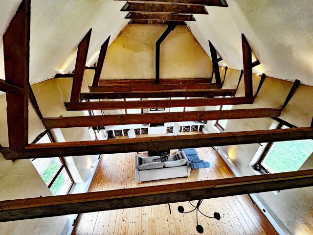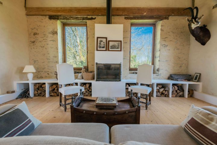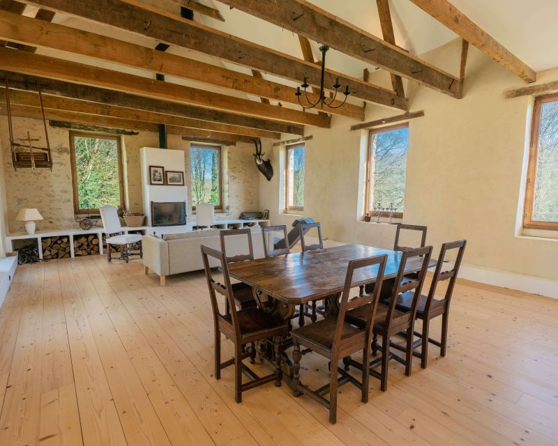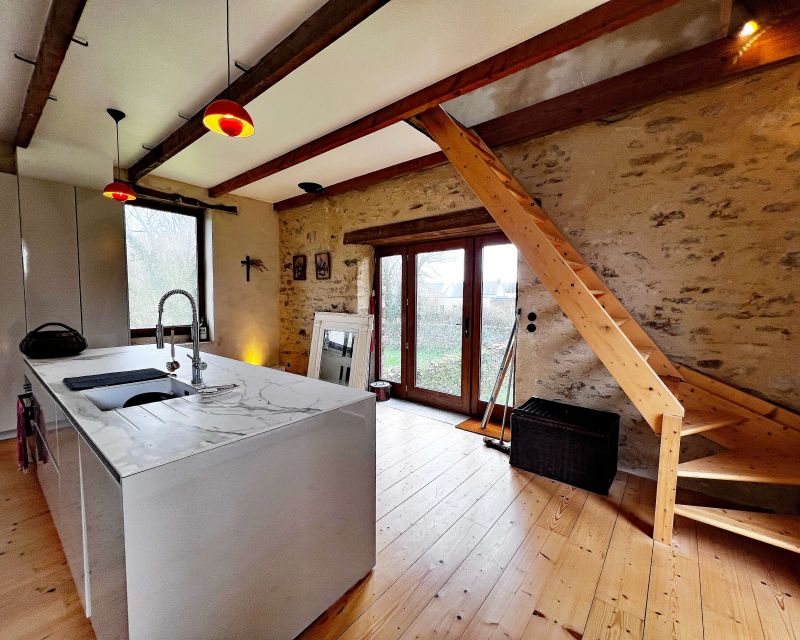 La maison d’habitation historique de 185 m² est composée au rez-de-chaussée en dalles de schiste d’une vaste entrée, d’une cuisine salle à manger, d’un salon, d’une bibliothèque et d’une salle d’eau, au premier étage trois grandes chambres, un bureau et une salle de bains.