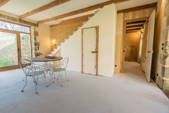 le second batiment est un ancien séchoir, en cour de restauration de 200 m² est composé d’une spacieuse pièce de vie et de deux grandes suites chacune avec sa salle d’eau.