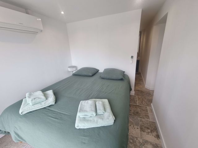 Une suite parentale en RDC avec salle de bain privative. On peut accéder à la terrasse depuis cette chambre.