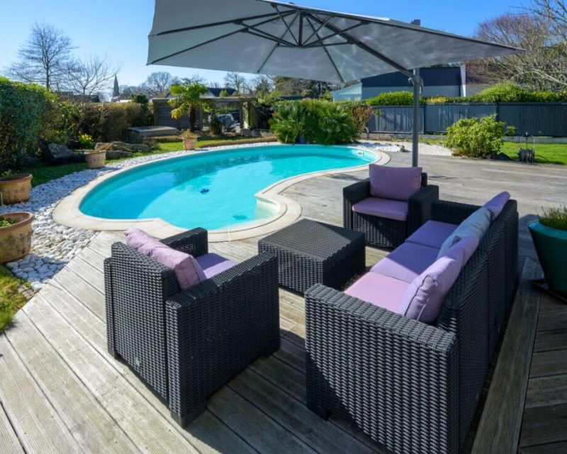 Arradon, golfe du Morbihan en bretagne sud, rare à 5 mn à pied du coeur de bourg au fond d'une impasse calme sans vis à vis. Belle contemporaine de plain pied d'environ 170 m² habitables sur 1200 m² de terrain bien exposé, clos et arboré. Séjour et coin repas d'environ 60 m², cuisine équipée de 15 m² environ, 3 chambres , 1 salle d'eau, 1 salle de bains , une mezzanine/bureau, une salle de jeux et cave à vins. Terrasse en bois d'envion 110 m², piscine et spa. Chauffage électrique plancher chauffant et radiateurs, poéle à bois, menuiseries alu,.. belles prestations.