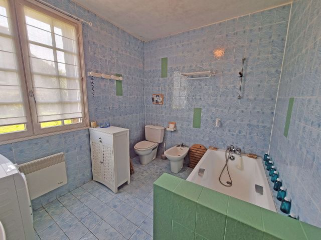 Côté nuit, en RDC, vous profiterez d'une belle chambre de plain-pied avec, en face, sa salle de bains et WC.