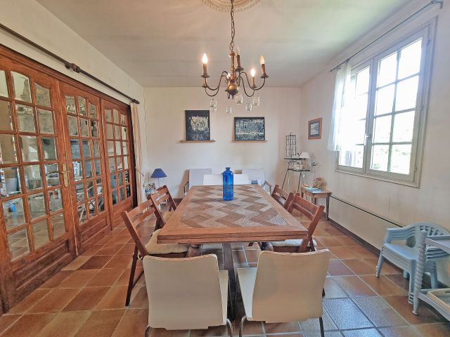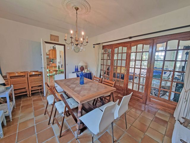 À l’intérieur, les volumes sont généreux. L’entrée distribue une double réception d’environ 38 m2 composée d’une salle à manger et d’un salon-séjour avec cheminée, idéal pour des moments conviviaux en toute saison. Attenante, la cuisine indépendante (environ 14 m2) permet d’envisager aisément une cuisine ouverte si vous souhaitez décloisonner.