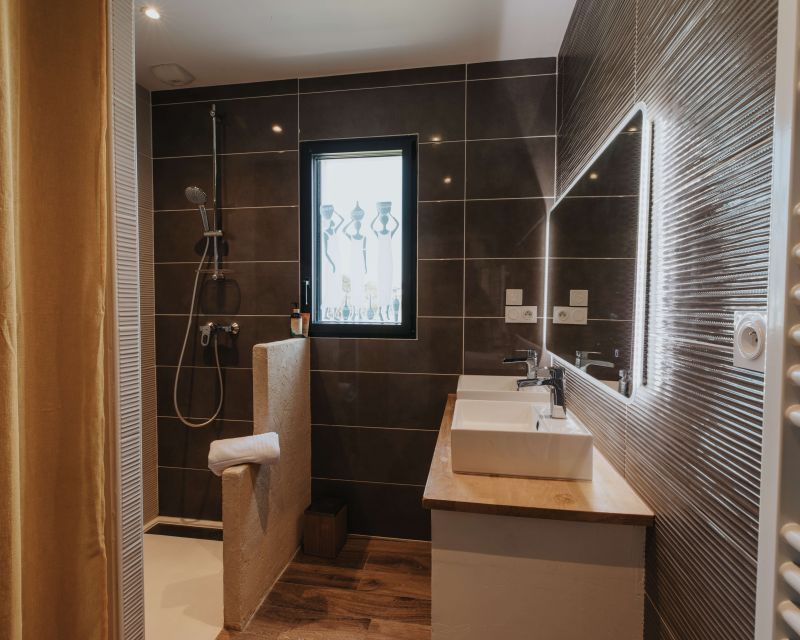 Au rez-de-chaussée la chambre parentale avec son dressing équipé, la salle d’eau et WC, dégagement pour l’accès à la piscine d’intérieur.
