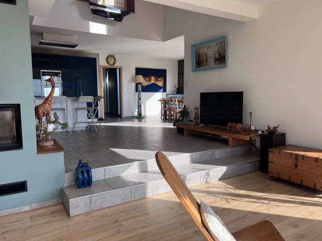 La maison bénéficie d’une surface habitable d’environ 228 m² répartis sur sept pièces, au rez-de-chaussée par le hall d’entrée vous êtes dans la pièce à vivre de plus de 70 m² au centre de la maison, un espace de vie lumineux et spacieux, orné de grandes ouvertures, vous tournez à 360° vous découvrez la salle à manger, le salon en ½ niveau, la cuisine équipée et fonctionnelle qui vous permettra de concocter de délicieux repas tout en admirant le panorama.