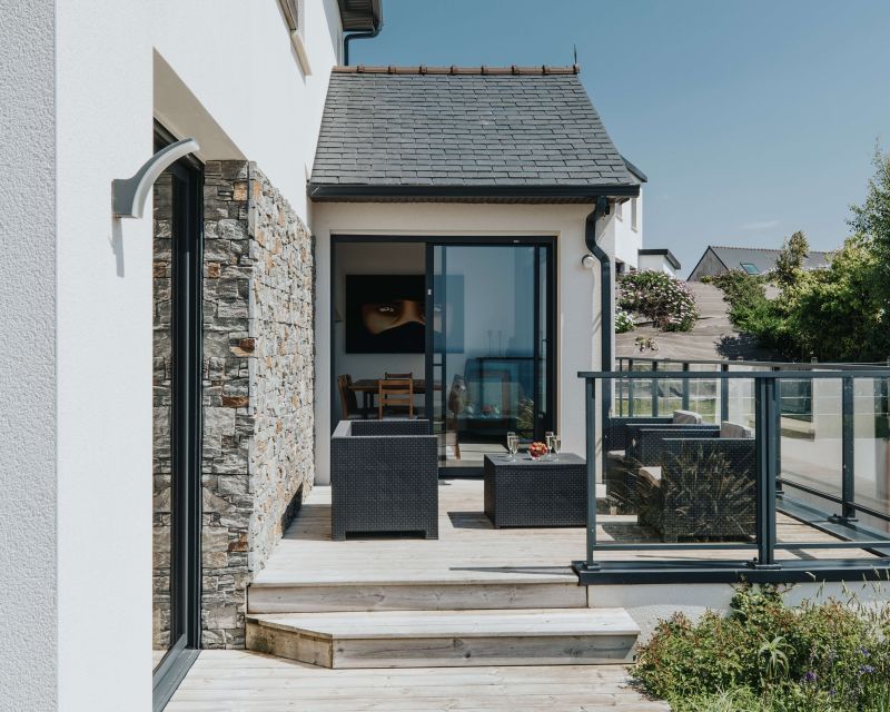 Pierres et Mer vous présente cette belle contemporaine, de construction récente (2019), idéalement située dans le pays d’Iroise à la pointe du Finistère sur la commune de Plouarzel, à quelques pas de très belles plages, comme celle de Ruscumunoc.