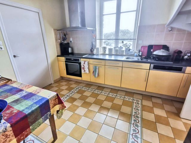 - Au rez-de-jardin : entrée, salle de séjour - salon avec un poêle à bois, salle à manger, pièce à usage de "salle à manger d'été" ou de grand salon avec cheminée, cuisine aménagée et équipée, arrière-cuisine - buanderie.