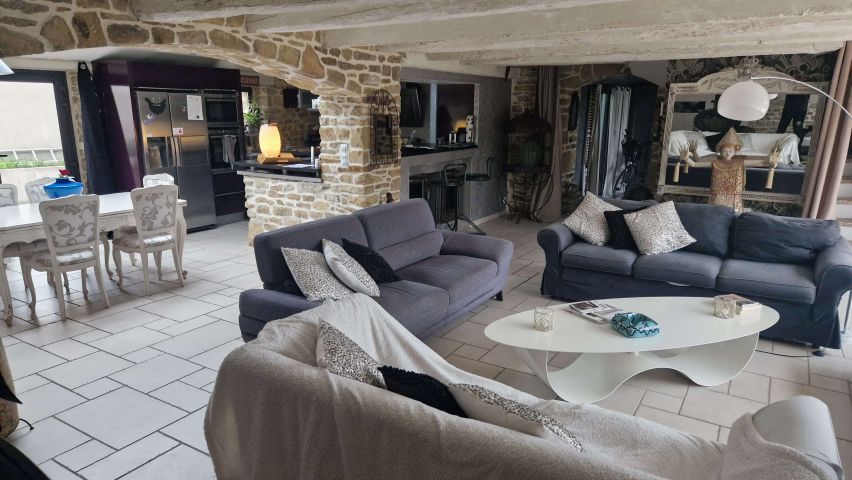 - Au rez de jardin : un vaste séjour de 60 m² environ, un coin repas donnant sur la cuisine équipée, une piéce cocooning de 30 m² , 2 chambres avec salle d'eau partagée, un garage de 25 m² environ. - A l'étage : une suite parentale avec salle d'eau et WC séparé, une autre chambre avec accés du coin cocooning. Prestations de goût et matériaux de qualité. A voir absolument.
